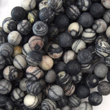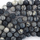 Natural Matte Black Spider Web Jasper Round Beads 15" Strand 6mm 8mm 10mm 12mm
