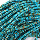 Sea sediment jasper heishi disc beads. This strand is 15.5" long, about 2x4mm in light blue, sky blue, magenta, green.