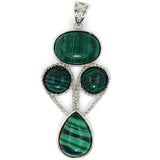 Green synthetic malachite silver plated oval coin teardrop pendant. It measures about 52x30x6mm.