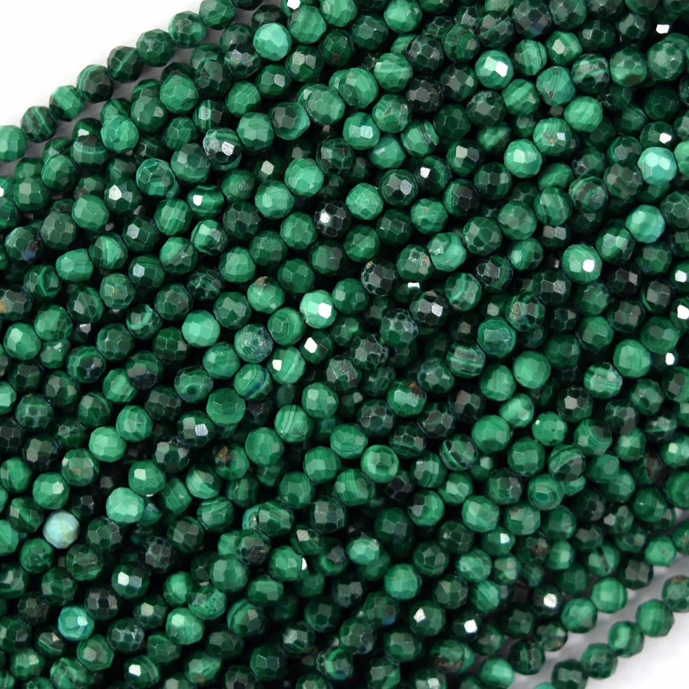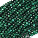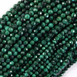 Natural faceted green malachite round beads. The strand is 15.5" long, about 3mm, 4mm in diameter.