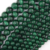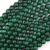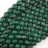 Natural green malachite round beads. This strand is 15.5" long, about 6mm 8mm 10mm in diameter.