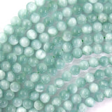 Natural green moonstone round beads with eye. This strand is 15.5" long, about 4mm, 6mm, 8mm, 10mm, 12mm in diameter.