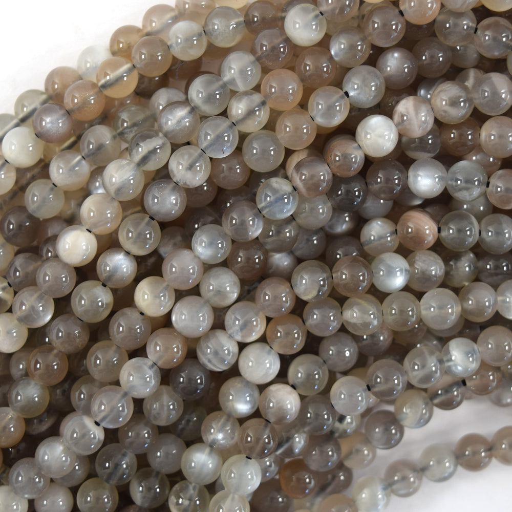 Natural gray moonstone round beads. This strand is 15" long, about 6mm, 8mm, 10mm in diameter.