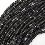 Mother of pearl heishi disc beads in black/gray, blue, green, pink, purple colors. This strand is 15.5" long, about 2x4mm.