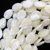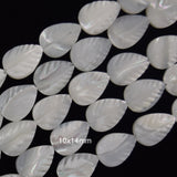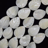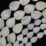 White Mother Of Pearl MOP Carved Leaf Beads Gemstone 15.5" Strand 14mm 20mm