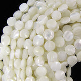 White Mother Of Pearl MOP Coin Beads Gemstone 15.5" Strand 8mm 10mm 15mm 20mm