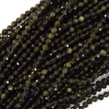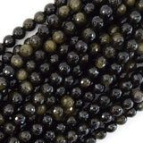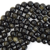 Natural Faceted Black Gold Obsidian Round Beads 15" Strand 3mm 4mm 6mm 8mm 10mm 12mm