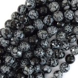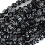 Natural Faceted Black Snowflake Obsidian Round Beads 15" Strand 6mm 8mm 10mm
