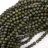 Natural Green Epidote Pyrite Inclusion Round Beads 15" Strand 4mm 6mm 8mm 10mm