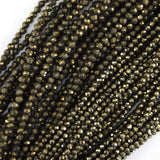 Natural Micro Faceted Pyrite Round Beads Gemstone 15.5" Strand 3mm 4mm