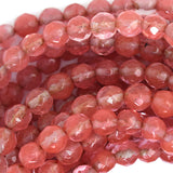 Faceted cherry quartz round beads. This strand is 15" long, about 6mm 8mm 10mm in diameter.