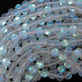 Matte white rainbow mystic aura quartz round beads. The strand is 15" long, about 6mm, 8mm, 10mm, 12mm in diameter.