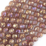 Mystic Titanium Faceted Strawberry Quartz Round Beads 15" Strand 6mm 8mm 10mm