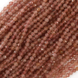 Natural Faceted Strawberry Quartz Round Beads 15" strand 2mm 3mm 4mm 6mm 8mm