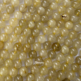 Natural gold rutilated quartz round beads. This strand is 15" long, about 6mm, 8mm, 10mm in diameter.