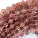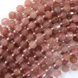 Natural Strawberry Quartz Prism Double Point Cut Faceted Beads 15.5" 8mm 10mm