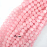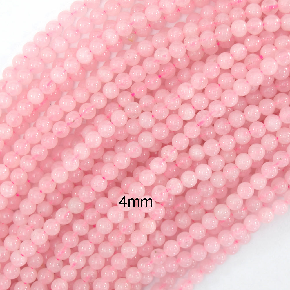 Pink rose quartz round beads. This strand is 15" long, about 4mm, 6mm, 8mm, 10mm, 12mm in diameter.