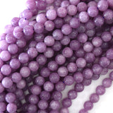 Purple lepidolite colored quartz round beads. This strand is 15" long, about 6mm, 8mm, 10mm in diameter.