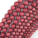 AA Natural pink rhodonite round beads. This strand is 15" long, about 6mm, 8mm, 10mm in diameter.