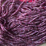 Natural genuine faceted pink red ruby round beads. This strand is 15.5" long, about 3mm, 4mm in diameter.
