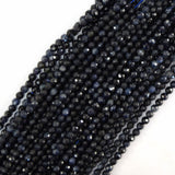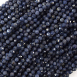 Natural Genuine Faceted Blue Sapphire Round Beads Gemstone 15.5" Strand 3mm 4mm