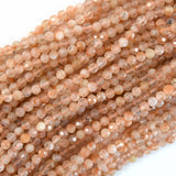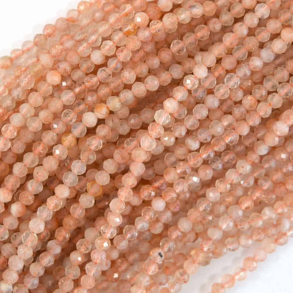 Natural faceted orange gold sunstone round beads. This strand is 15.5" long, about 3mm, 4mm in diameter.