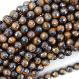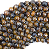 Mystic titanium faceted tiger eye round beads. This strand is 15" long, about 6mm, 8mm, 10mm in diameter.