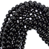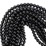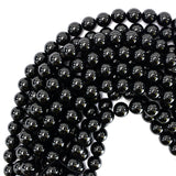 Natural black tourmaline round beads. This strand is 15.5" long, about 4mm, 6mm, 8mm, 10mm in diameter.