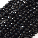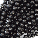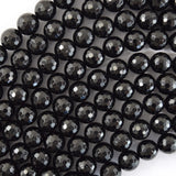 Natural faceted black tourmaline round beads. This strand is 15" long, about 3mm, 4mm, 6mm, 8mm, 10mm in diameter.