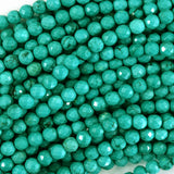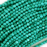 Faceted green turquoise howlite round beads. This strand is 15.5" long, about 2mm, 3mm, 4mm, 6mm, 8mm, 10mm in diameter.