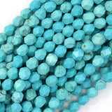 Star cut faceted blue turquoise howlite round beads. This strand is 15" long, about 6mm, 8mm,10mm in diameter.