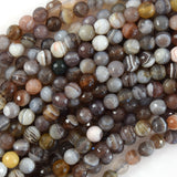 AA Natural Faceted Botswana Agate Round Gemstone 15.5" Strand 6mm 8mm 10mm S1