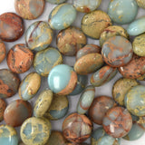 12mm brown blue snake skin jasper coin beads 15.5" strand