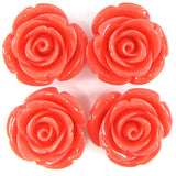 24mm synthetic coral carved rose flower beads 15" strand pink 15 pieces