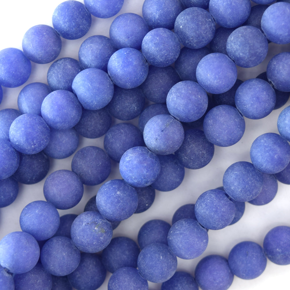 Matte blue jade round beads. This strand is 15" long, about 8mm in diameter.