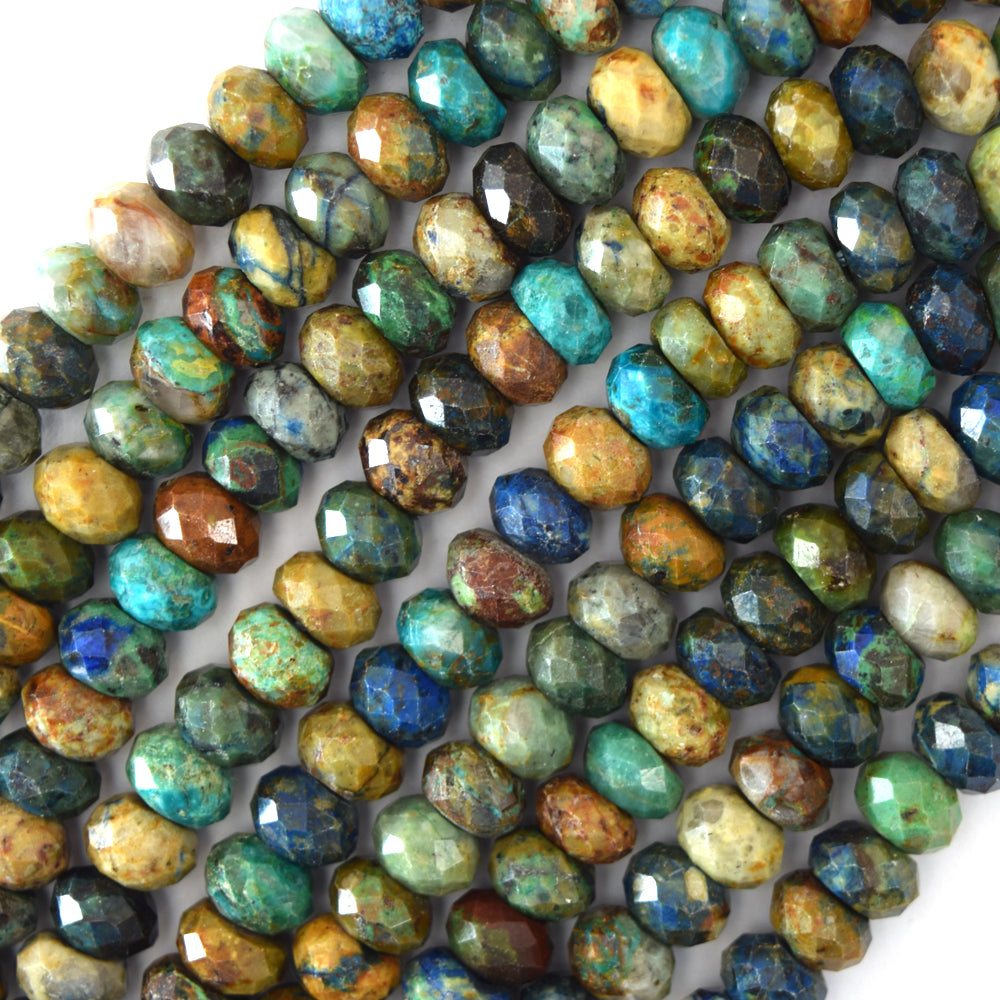 • 8mm natural faceted brown green Azurite rondelle beads 15.5" strand