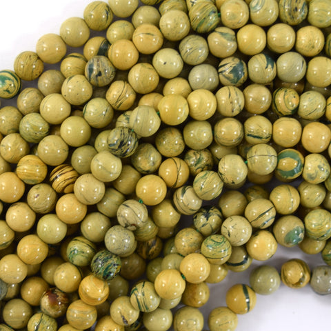 AA Natural Lemon Green Muscovite Round Beads Gemstone 15" Strand 6mm 8mm 10mm
