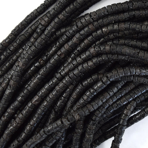 Black Lava Heishi Disc Beads Gemstone 15" Strand 4mm 6mm