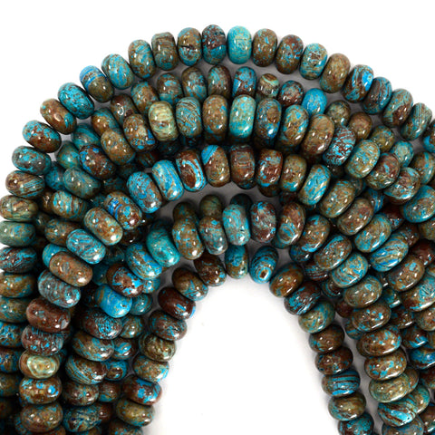 Brown Blue Turquoise Rondelle Buttons Beads Gemstone 15.5" Strand 6mm 8mm 10mm