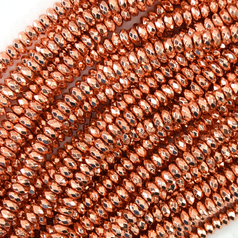 Faceted Rose Gold Hematite Rondelle Button Beads 15.5" Strand 3mm 4mm 6mm