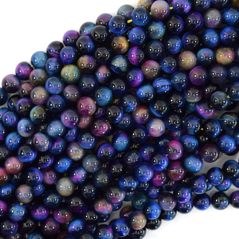 AA Galaxy Blue Pink Purple Tiger Eye Round Beads 15.5" Strand 4mm 6mm 8mm 10mm
