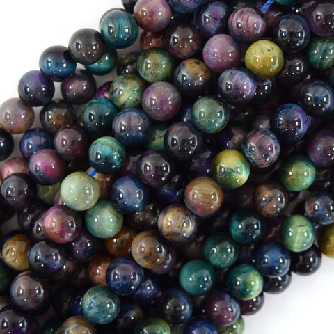 Galaxy Rainbow Tiger Eye Round Beads Gemstone 15" Strand 6mm 8mm 10mm 12mm S2