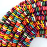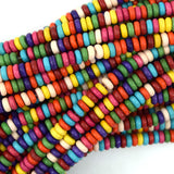 Multicolor turquoise magnesite rondelle button beads. This strand is 15" long, about 3x6mm, 4x6, 3x8mm, 3x12mm.