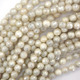 Mystic Titanium Faceted Cream White Moonstone Round Beads 14.5" Strand 6mm 8mm