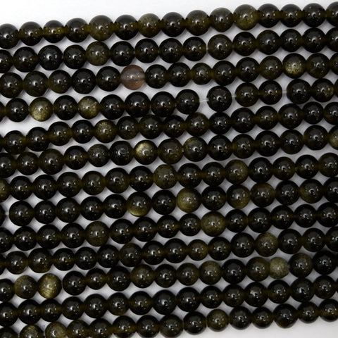 Natural Black Gold Obsidian Round Beads 15.5" Strand 4mm 6mm 8mm 10mm 12mm