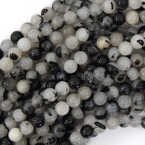 Natural Black Rutilated Quartz Round Beads 15.5" Strand S1 6mm 8mm 10mm