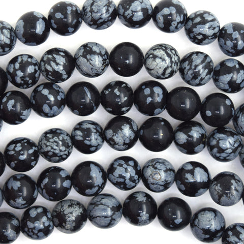 Natural Black Snowflake Obsidian Round Beads 15" Strand 4mm 6mm 8mm 10mm