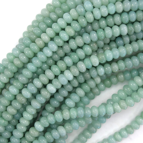 Natural Blue Amazonite Rondelle Button Beads Gemstone 14.5" Strand 6mm 8mm S2