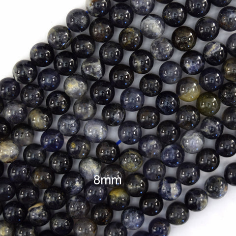 Natural Blue Iolite Round Beads Gemstone 15.5" Strand 6mm 8mm 10mm S1