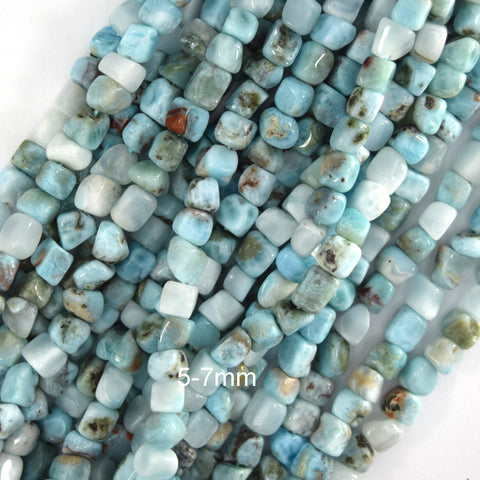 Natural Blue Larimar Cube Pebble Nugget Beads 15" Strand 5-7mm 6-8mm 7-9mm